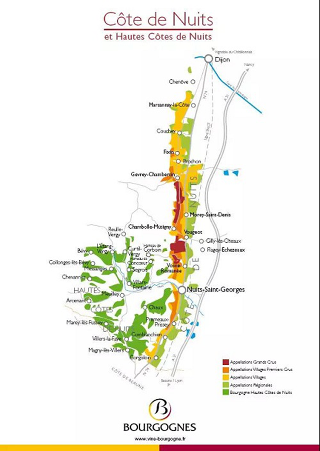 除了最北面的只生產(chǎn)(chǎn)白葡萄酒的產(chǎn)(chǎn)區(qū)(qū)夏布利(Chablis),勃艮第核心產(chǎn)(chǎn)區(qū)(qū)在金丘區(qū)(qū)(Côte d’Or),其中北部為尼伊丘(Côte de Nuit),主要產(chǎn)(chǎn)紅葡萄酒,產(chǎn)(chǎn)少量白葡萄酒;南部為博納丘(Côte de Beaune),主要產(chǎn)(chǎn)白葡萄酒,少量紅葡萄酒。