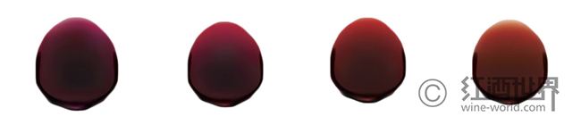 葡萄酒陳年時或多或少都會經(jīng)(jīng)歷一個緩慢氧化的過程,葡萄酒顏色變化便是這一化學(xué)(xué)反應(yīng)(yīng)最直接的表現(xiàn)(xiàn)。對于紅葡萄酒來說,其顏色主要來源于果皮上的色素。隨著時間推移,這些色素在氧氣的作用下,與單寧聚合,形成聚合鏈,從而減少了零散分布在酒液中的色素,紅葡萄酒的顏色也就隨之變淺,若陳年時間足夠長,甚至?xí)葑兂勺厴蠆梟?/span>