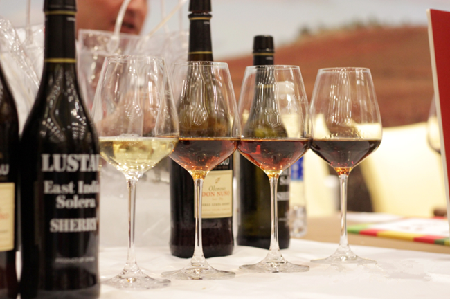 市場上最常見的加強酒是雪莉酒(Sherry)和波特酒(Port)。雪莉酒被譽為“裝在瓶子里的西班牙陽光”,釀酒葡萄為白葡萄品種,加強是在酒精發酵結束之后,成酒從干型到甜型皆有,風格多樣。而波特酒可分為紅波特酒、白波特酒以及桃紅波特酒,不過最為常見的還是由紅葡萄品種釀造的紅波特酒。由于波特酒的加強發生在基酒酒精發酵過程中(基酒的酒精度達到5-9%abv時),因此所有波特酒都是甜型的。此外,馬德拉酒(Madeira)和加強型麝香葡萄酒(Fortified Muscat)也是非常經典的加強酒。