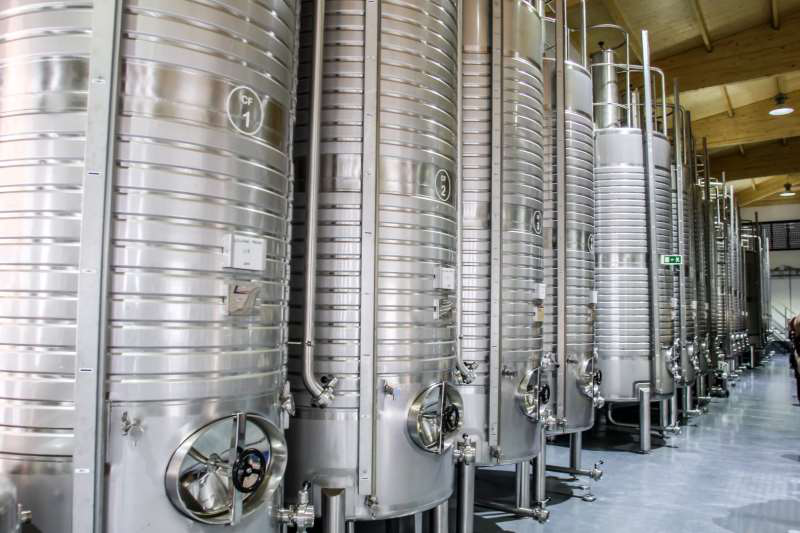 紅葡萄酒的發(fā)酵溫度較高,一般為20-32℃,較高的溫度有利于提取顏色和單寧。由于果皮和葡萄汁一起發(fā)酵,紅葡萄酒的發(fā)酵一般不會(huì)在橡木桶中進(jìn)行,而是更多地在不銹鋼罐等惰性容器中進(jìn)行。在發(fā)酵過程中,釀酒師會(huì)選擇使用淋皮(Pump Over)、倒罐并回混(Rack and Return)、旋轉(zhuǎn)式發(fā)酵機(jī)(Rotary Fermenter)等方式幫助葡萄汁與果皮進(jìn)行更多的接觸,促進(jìn)顏色、單寧和風(fēng)味物質(zhì)的提取。