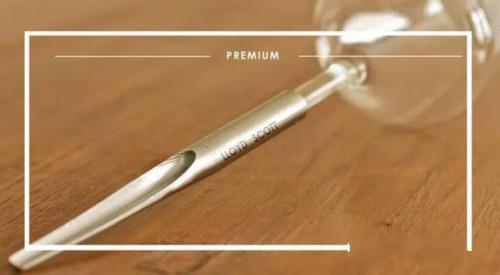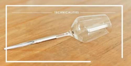 這款紅酒杯的上端設計和大家日常使用的紅酒杯相同,只不過在下端進行了創(chuàng)新設計。在酒杯的底部,并不是傳統(tǒng)底座式設計,而是采用了類似于針尖的形狀。