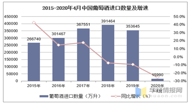 2015-2020年4月中國(guó)葡萄酒進(jìn)口數(shù)(shù)量及增速
