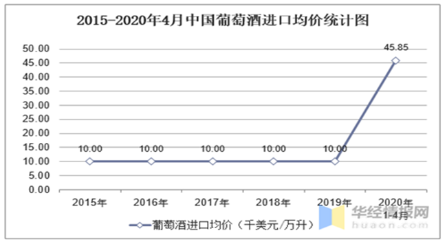 2015-2020年4月中國(guó)葡萄酒進(jìn)口均價(jià)統(tǒng)(tǒng)計(jì)圖