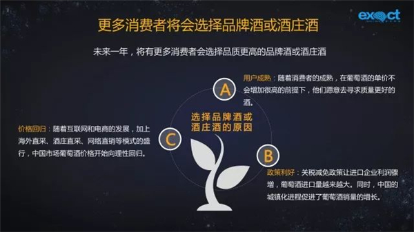從現(xiàn)狀來看,中國葡萄酒行業(yè)目前邁入調(diào)整開放階段,從發(fā)展趨勢來看,首先2018年,葡萄酒企業(yè)將獲得更多新零售機遇,其次中國葡萄酒消費仍有較大的發(fā)展空間。