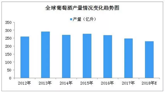 近日,中商產(chǎn)業(yè)研究院發(fā)布了一份《2018-2023年全球葡萄酒市場發(fā)展前景及投資機(jī)會研究報告》,報告顯示,預(yù)計2018年全球產(chǎn)量將繼續(xù)下滑,約為230億升。