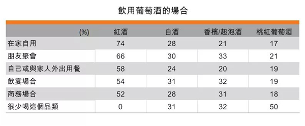 超過(guò)50%消費(fèi)者在不同場(chǎng)合均選擇紅葡萄酒