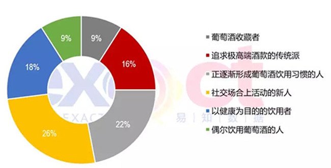 葡萄酒消費者根據(jù)消費偏好及飲用習(xí)慣可分為六類人群,包括葡萄酒收藏者、追求極高端酒款的傳統(tǒng)派、正逐漸行程葡萄酒飲用習(xí)慣的人等。