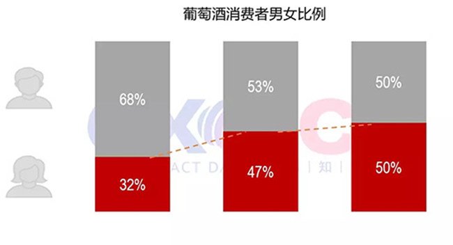 近年來,女性在葡萄酒消費者中占比逐年擴大。有相關(guān)數(shù)據(jù)統(tǒng)計,女性消費人數(shù)正以每年22%的速度增長。跟據(jù)2017年香港貿(mào)發(fā)局對內(nèi)地葡萄酒消費者做的抽樣調(diào)查顯示,男性消費者與女性消費者占比相當(dāng),各占50%。