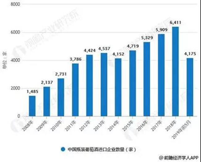 而根據(jù)前瞻產(chǎn)業(yè)研究院的數(shù)據(jù)顯示,2019年國內(nèi)瓶裝葡萄酒進口企業(yè)和2018年相比,也至少減少了40%。