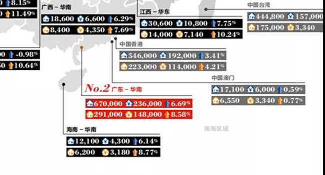 CBNData顯示,廣東是2018和2019年度酒水消費金額占比最高的省份,而廣東省坐擁深圳和廣州兩個一線城市,表現(xiàn)十分搶眼。 回頭看廣東省600萬及1000萬資產(chǎn)家庭數(shù)量,結(jié)論顯而易見了。