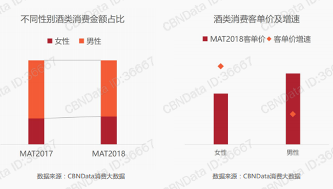 數(shù)據(jù)顯示,中國女性消費酒水的金額比例和客單價雙雙上升。
