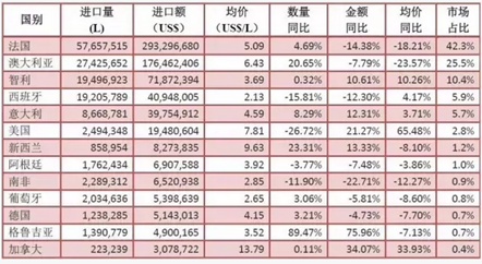 2017年1-4月進口酒中,總體呈下跌趨勢,其中葡萄酒微跌,英進口啤酒猛增超5倍,白蘭地領漲烈性酒。 6月5日,中國食品土畜進出口商會酒類進出口商分會發布了2017年1-4月酒類商品進口統計情況的數據報告,對包括葡萄酒、烈酒、啤酒在內的酒類商品進口數量及進...