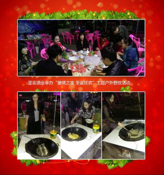 12月25日,適逢圣誕節(jié)(jié)來臨之際,公司組織藍(lán)菲酒業(yè)(yè)全體員工開展“激情之夜 圣誕狂歡”為主題的農(nóng)(nóng)家樂戶外野炊活動(dòng),讓全體員工在公司共度一個(gè)難忘的圣誕節(jié)(jié)。