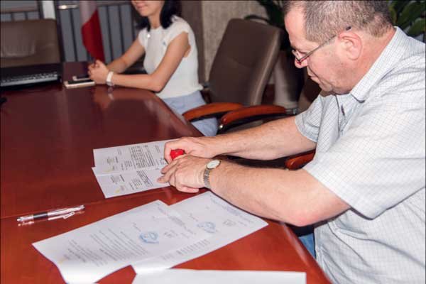 本次,Bob Franchitto及翻譯陳小姐,在藍菲酒業董事長莊榮昌先生一家的帶領下,對藍菲總部辦公環境、廣州旗艦店、會所展廳等地進行參觀考察。參觀結束后,莊總與Bob Franchitto進行了交流和座談,并簽訂了深度合作協議,確立新的合作計劃。