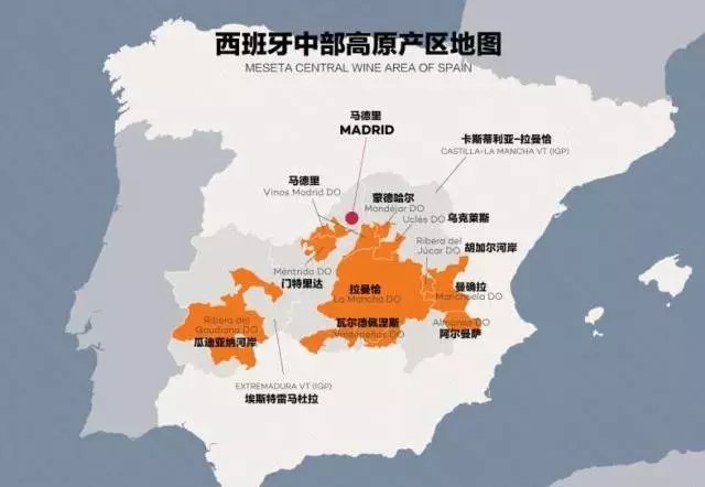Castilla–La Mancha位于整個伊比利半島的正中心,這里有著非常典型的高原地型與大陸型氣候,日夜溫差極為劇烈,許多經(jīng)濟農(nóng)作都難以在這個區(qū)域發(fā)展。但這樣嚴峻的氣候環(huán)境,恰巧也提供了葡萄非常良好的成長空間,Castilla–La Mancha的葡萄園面積與葡萄酒產(chǎn)出量都占整個西班牙三分之二左右,廣達四十余萬公頃的葡萄園面積是世界之最。