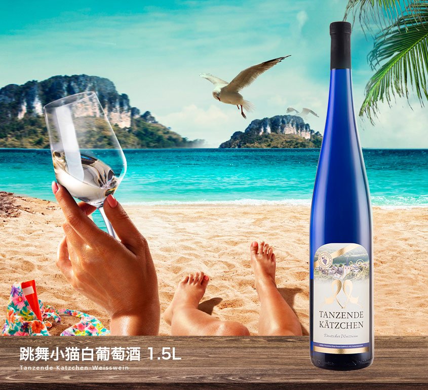 賣點:1.5L大瓶型,獨特優雅藍瓶型,甜而不膩,清爽可口,餐前酒的理想佐餐酒。
